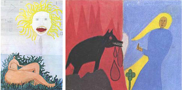 Top left: ill. 24 from Jolande Jacobi’s book “Masks of the soul”. Lower left: same, ill. 60